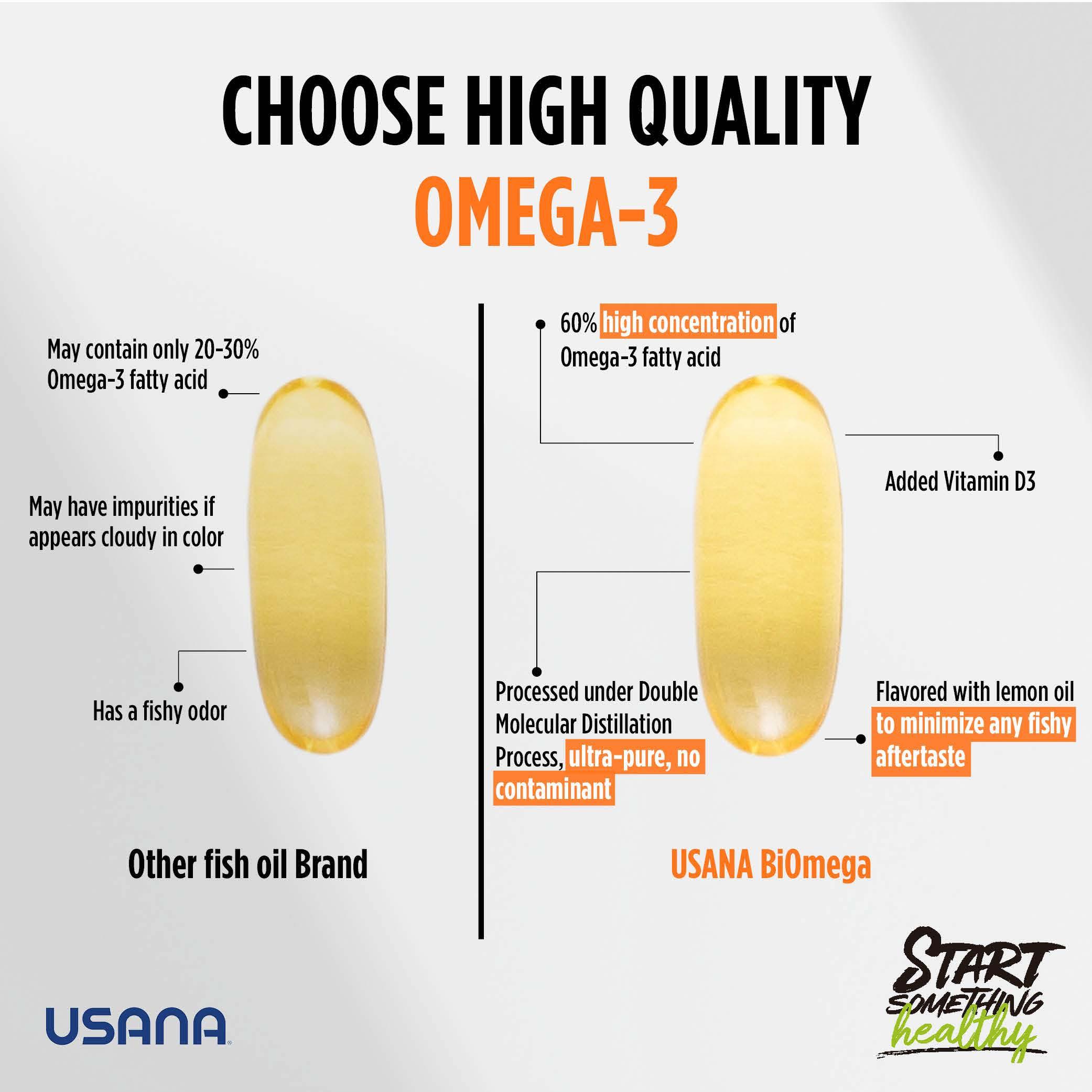 Your body can’t make many omega-3s on its own. So, eating fatty fish a couple times a week is one way to boost your intake. But adding USANA BiOmega every day makes it easy to get plenty of omega-3s in your diet.